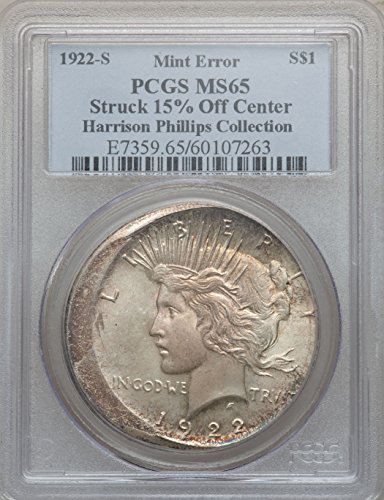 The 1922 S Peace Dollar Struck 15% Off Center MS-65 PCGS is that i recomended for 1922 silver dollar.